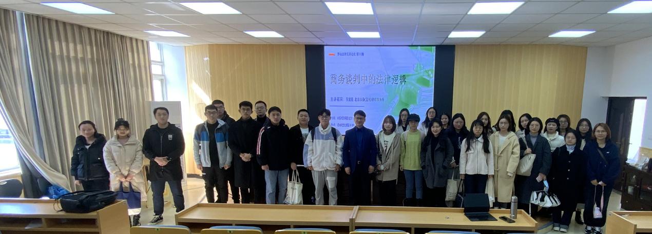 第一个环节,主要是理论部分讲授。李勇军副教授以课堂教学方式,主讲《法律谈判》的理论部分,并辅以相关经典谈判情节和场景来系统阐述法律谈判的重要性和各环节要点。