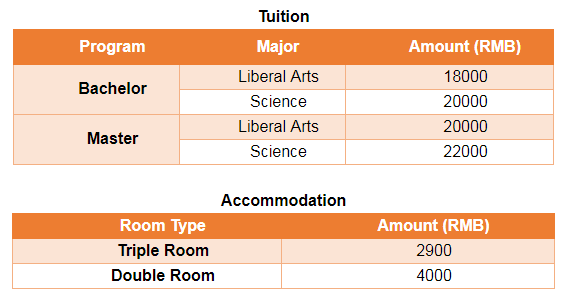 • Type B: 20000 yuan for each student. It is for 2017, 2018 and 2019 bachelor students.