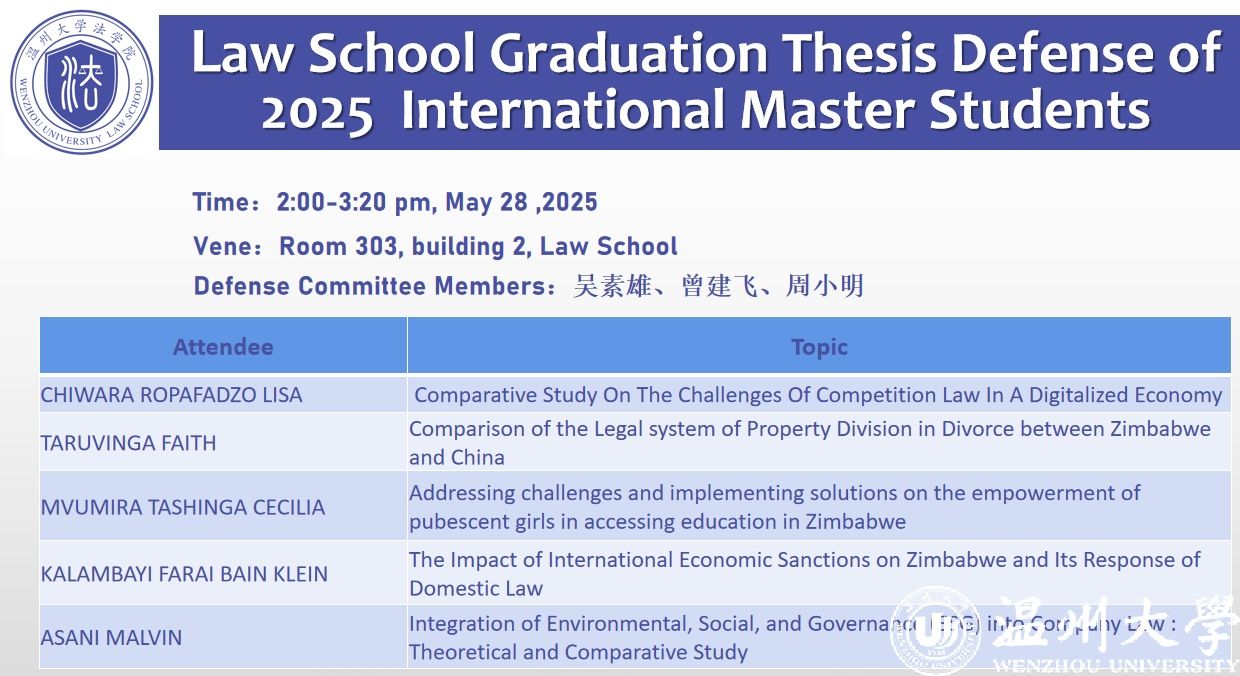 Law School Graduation Thesis Defense of 2025 International Master Students