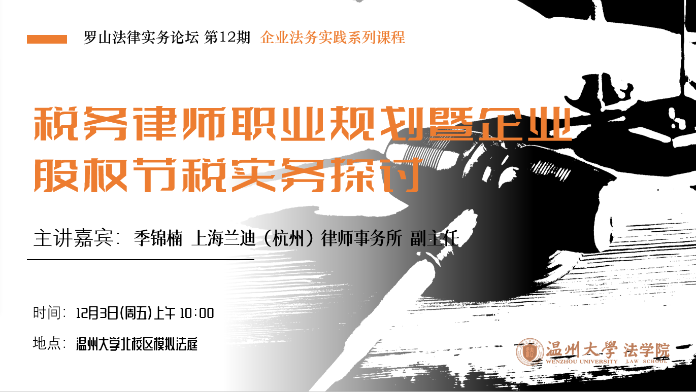 罗山法律实务论坛 第12期 税务律师职业规划暨企业股权节税实务探讨