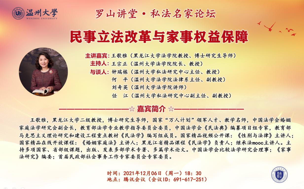 罗山讲堂·私法名家论坛预告 民事立法改革与家事权益保障