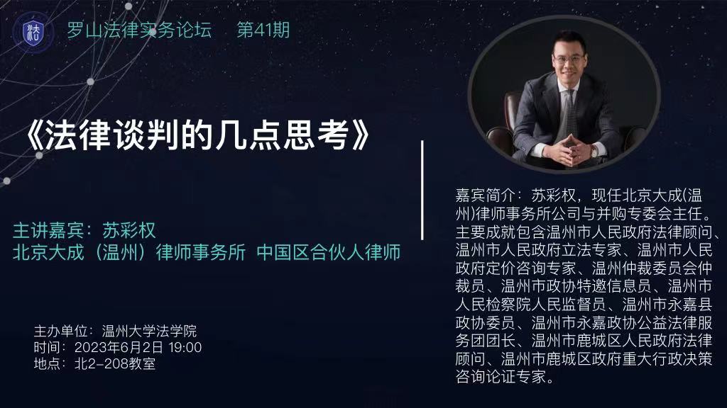 罗山法律实务论坛第41期 法律谈判的几点思考