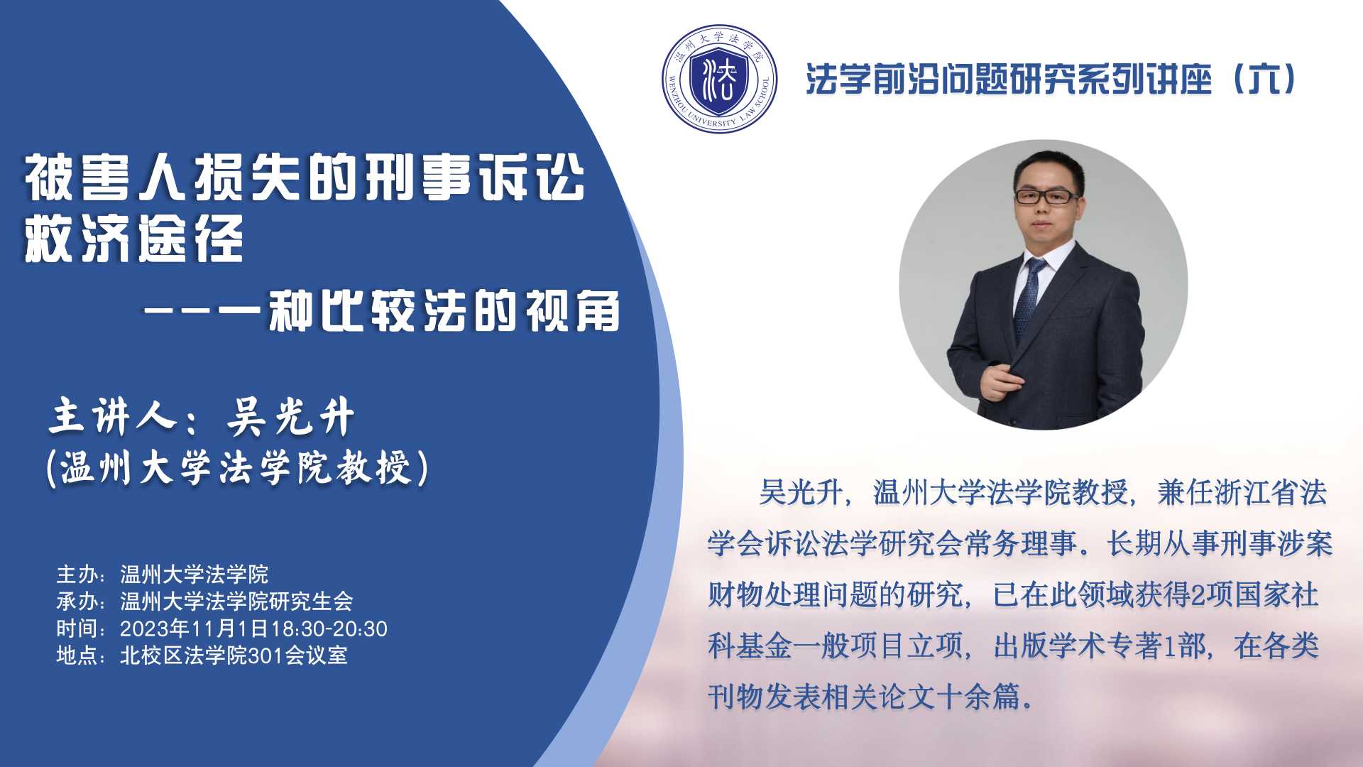 讲座预告|法学前沿问题研究系列讲座(六)