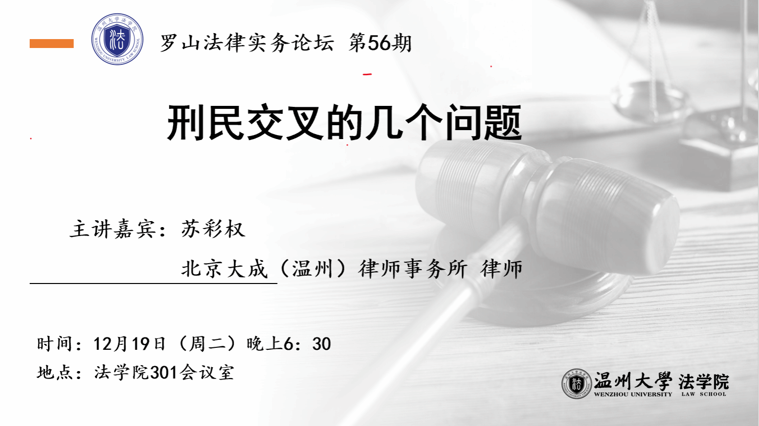 讲座预告丨罗山法律实务论坛 第56期:刑民交叉的几个问题