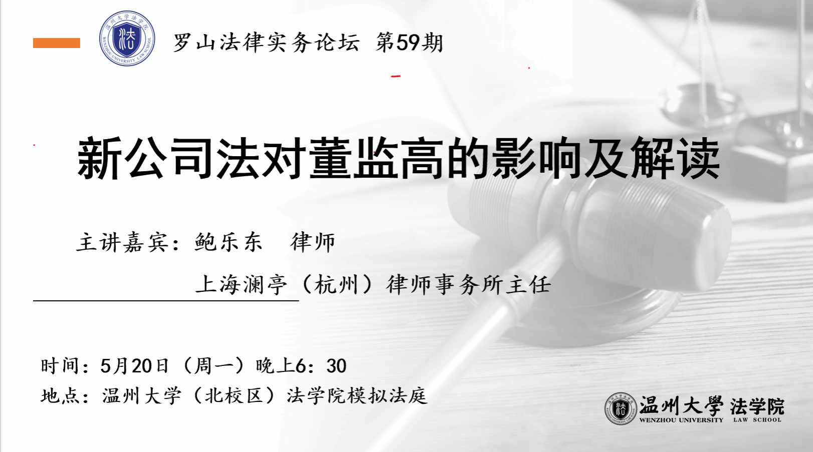 讲座预告丨罗山法律实务论坛 第59期:新公司法对董监高的影响及解读