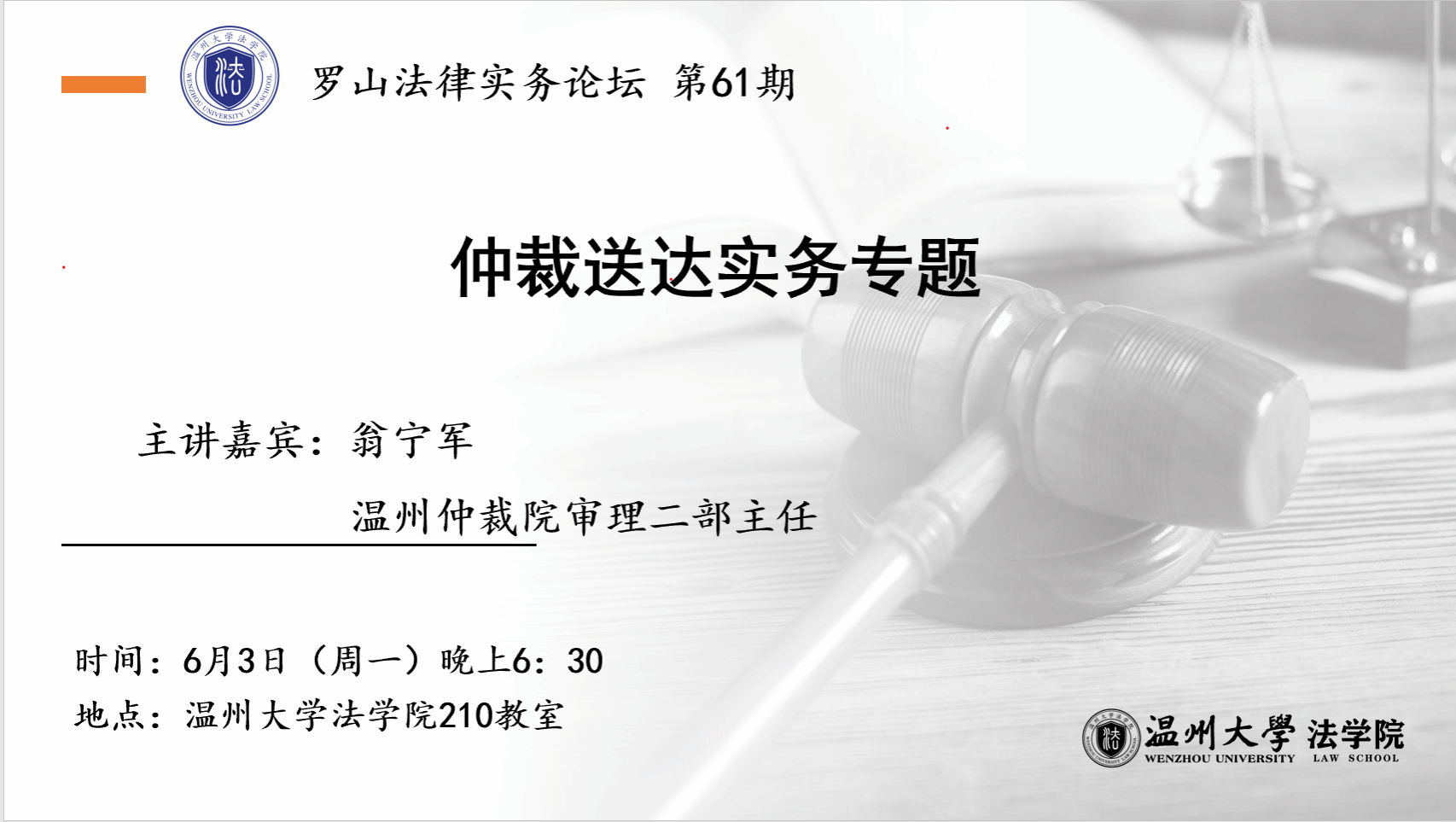 讲座预告丨罗山法律实务论坛 第61期:仲裁送达实务专题