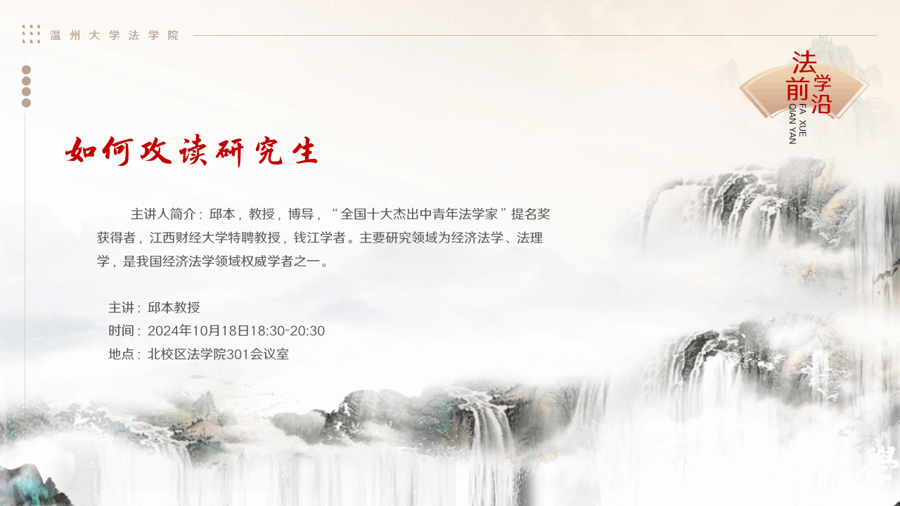 讲座预告|10月18日法学前沿第5讲:如何攻读研究生(主讲人:邱本)