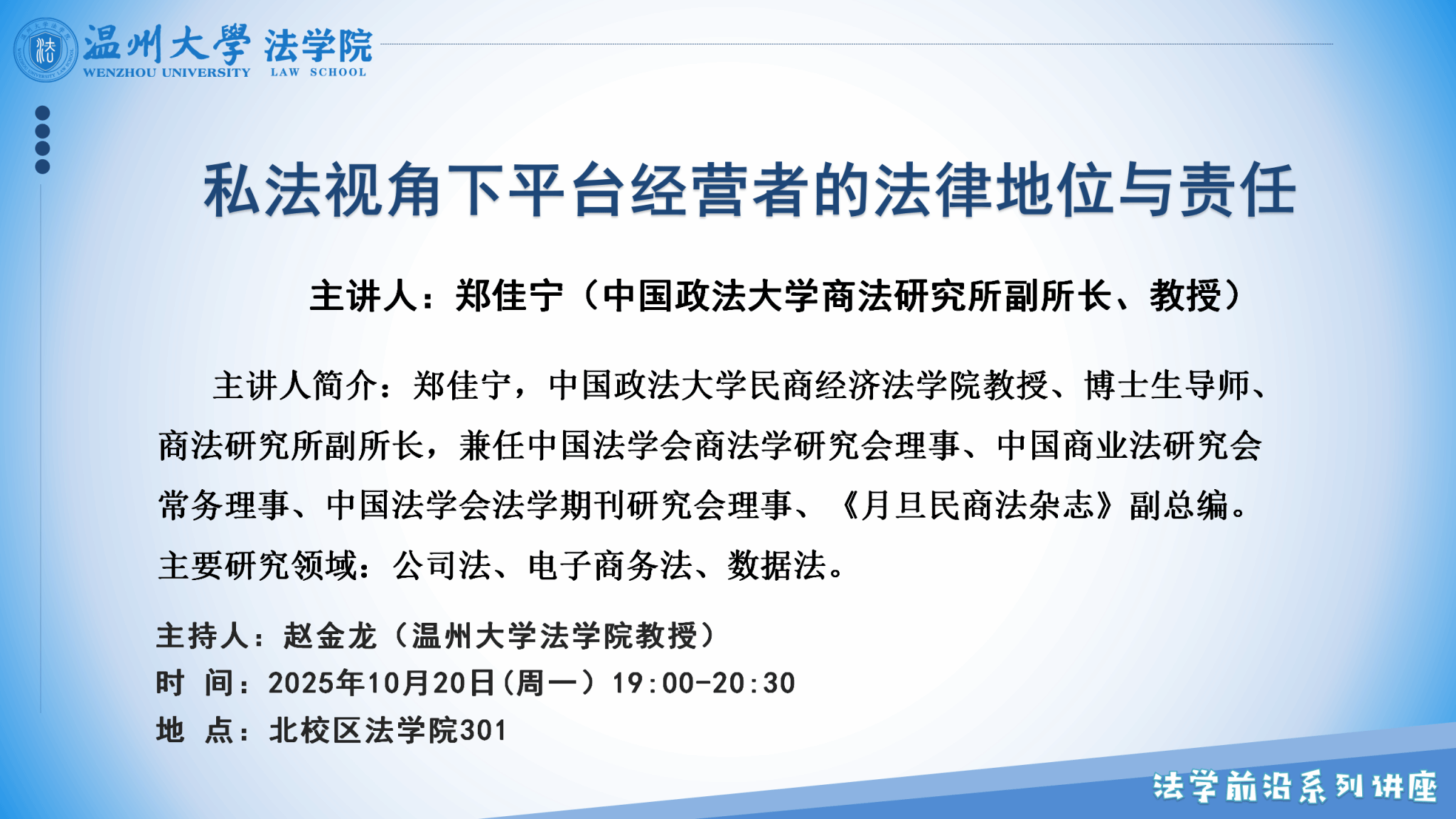 讲座预告|法学前沿讲座第三期第4讲:私法视角下平台经营者的法律地位与责任