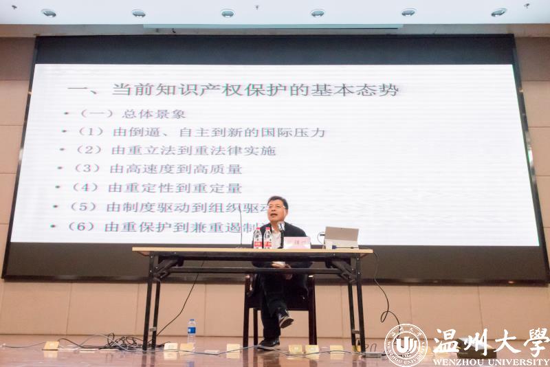 讲座分为八个部分:一、当前知识产权保护的基本态势;二、由观念到行动;三、由高速度到高质量;四、由传统到现代;五、由国外到国内;六、由重形式保护到重实质保护;七、由重定性到重定量;八、由重保护到重遏制滥用。