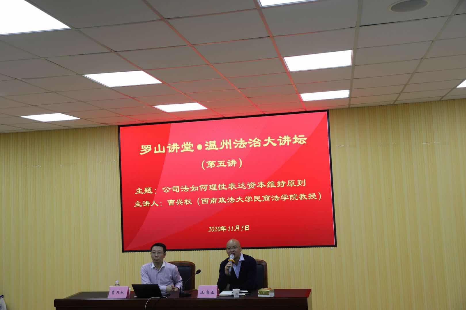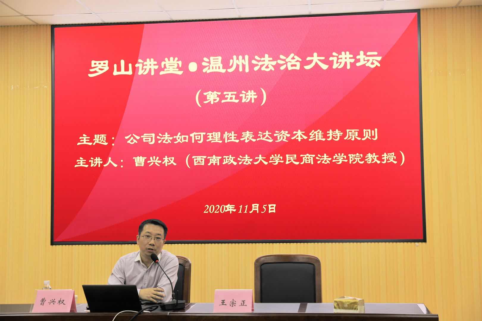 2020年11月5日晚上7点,西南政法大学民商看片狂人 教授、博士研究生导师、中国证券法学研究会常务理事、中国保险法学研究会常务理事、中国商法学研究会理事曹兴权教授应邀做客罗山讲堂·温州法治大讲坛,罗山讲堂·温州法治大讲坛由温州市政法委、温州市法学会、温州市律师协会、看片狂人 主办,看片狂人 私法研究中心、看片狂人 民商法创新团队协办。
