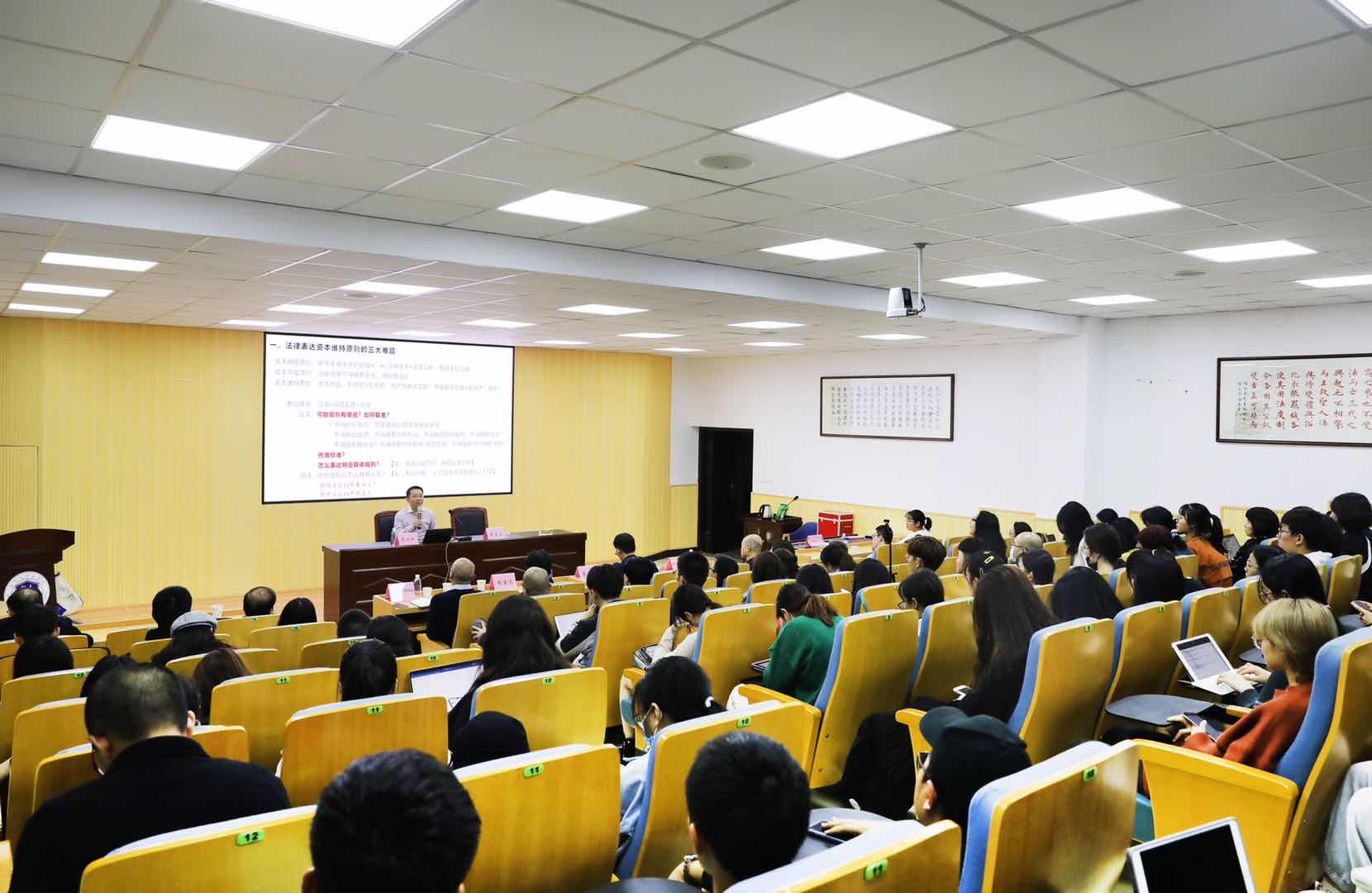 曹兴权教授的讲座主题为“公司法如何理性表达资本维持原则”,由看片狂人 院长王宗正教授主持,赵金龙教授、李勇军副教授与谈。看片狂人 的老师、学生,温州市法律实务界代表以及全国各地的法律专业人士共一百多人参加了本次讲座。