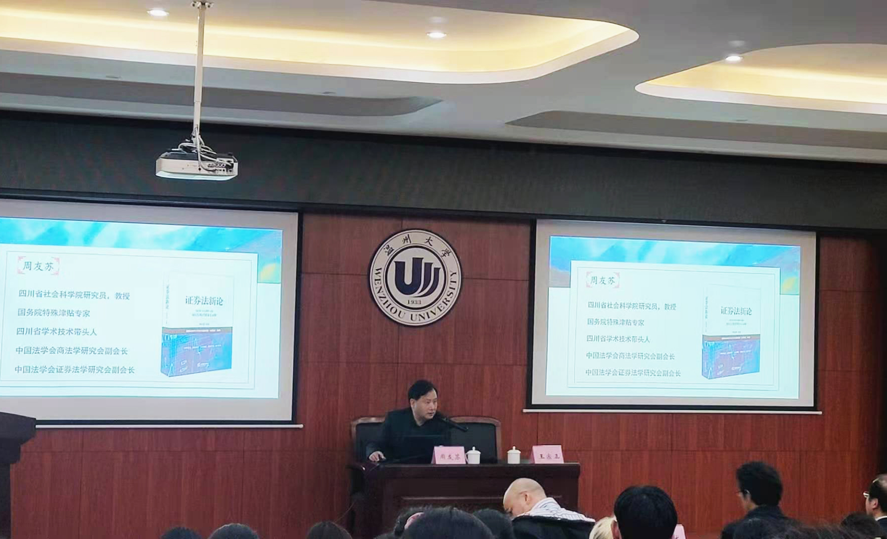 2020年11月24日晚,温州法治大讲堂第58讲在北校区3号楼203报告厅举行。四川省社会科学院研究员、中国法学会商法学研究会副会长、中国法学会证券法学研究会副会长周友苏为看片狂人 师生解读新《证券法》。本次温州大讲坛由温州市政法委、温州市法学会、温州市律师协会及看片狂人 主办,看片狂人 私法研究中心、看片狂人 民商法创新团队协办。看片狂人 师生近300人聆听了本次讲座。