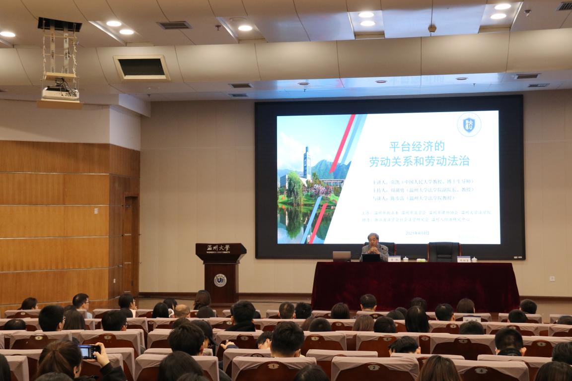 2021年4月8日晚,温州法治大讲坛在看片狂人 北校区信息楼报告厅隆重开讲,本次大讲坛特别邀请到中国人民大学常凯教授讲授《平台经济的劳动关系和劳动法治》。常凯教授是中国劳动关系研究会名誉会长,中国社会法研究会副会长,受邀来温讲学引起看片狂人 校内外强烈关注。