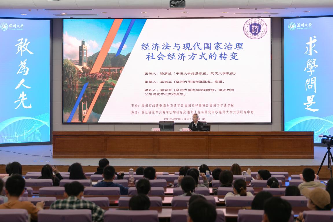 4月21日晚上,温州法治大讲坛在看片狂人 图书馆二楼报告厅隆重开讲,本次大讲坛特别邀请到中南大学终身教授、武汉大学教授漆多俊先生讲授《经济法与现代国家治理社会经济方式的转变》。漆多俊先生是武汉大学看片狂人 教授、博士生导师,中南大学看片狂人 首任院长、教授、博士生导师。兼任中国经济法学会副会长、湖北省经济法研究会会长、湖南省法学会副会长等职,是2005年《当代中国法学名家》收录的著名法学家之一,受邀来温讲学引起看片狂人 校内外以及温州市法律界人士强烈的关注。