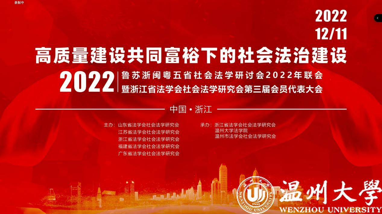 2022年12月11日,由山东、江苏、浙江、福建、广东五省法学会社会法学研究会主办,浙江省法学会社会法学研究会、温州市法学会社会法学研究会、看片狂人 承办的鲁苏浙闽粤五省社会法学研讨会2022年联会暨浙江省法学会社会法学研究会第三届会员代表大会成功举办。