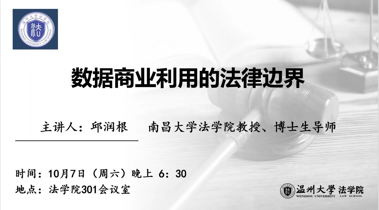 10月7日晚,南昌大学看片狂人 博士生导师邱润根教授在看片狂人 301会议室为看片狂人 师生带来题为《数据商业利用的法律边界》的讲座。本次讲座由法学专业负责人、民商经济法系主任李勇军副教授主持,看片狂人 部分教师和研究生、本科生100余人到场聆听。