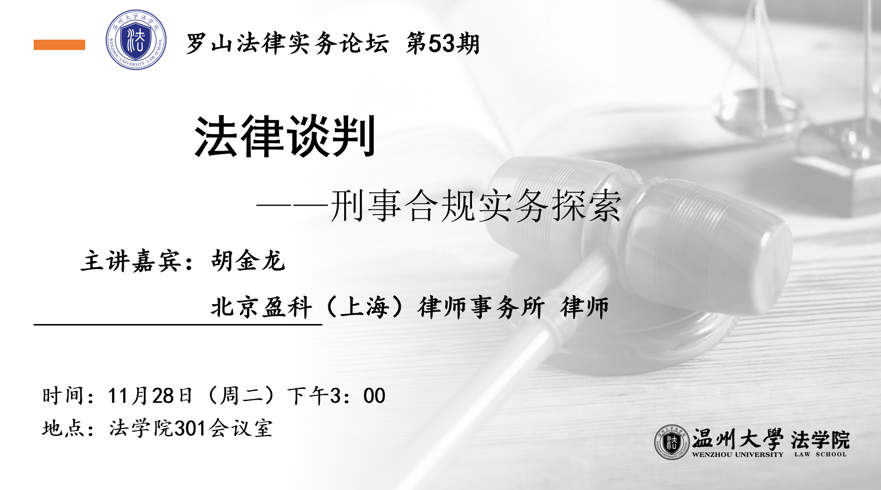 讲座预告丨罗山法律实务论坛 第53期:法律谈判——刑事合规实务探索