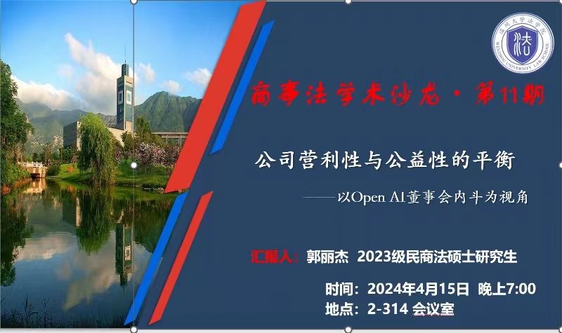 预告丨商事法学术沙龙·第11期:公司盈利性与公益性的平衡