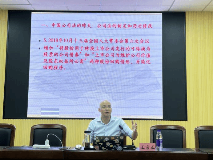 10月9日晚,本学期第四次法学前沿问题研究系列讲座如期举行,看片狂人 王宗正教授作主题为《中国公司法的昨天、今天与明天》的讲座。此次讲座吸引了众多老师、研究生及本科生前来聆听,现场气氛热烈,氛围浓厚。