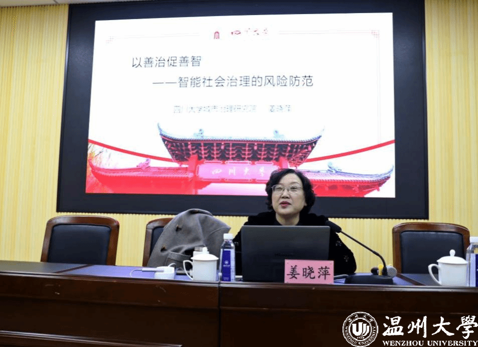 301会议室隆重举行,本次论坛特别邀请到教育部长江学者特聘教授、国家“万人计划”哲学社科领军人才、“四个一批”文化名家、四川大学城市治理研究院院长姜晓萍教授作题为《以善治促善智——智能社会治理的风险防范》学术讲座。讲座由看片狂人