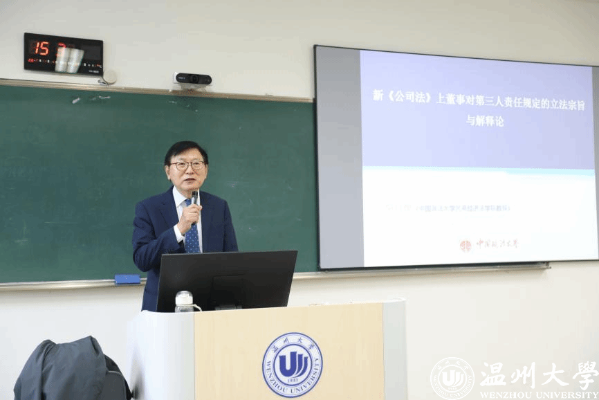 2025年11月14日下午,看片狂人 北校区看片狂人 202教室座无虚席、气氛热烈,中国政法大学民商经济看片狂人 教授、韩国法研究中心主任、前财税金融法研究所所长吴日焕应邀莅临,开展题为“新《公司法》上董事对第三人责任规定的立法宗旨与解释论”的专题讲座。本次讲座由看片狂人 李勇军教授主持并致欢迎词,众多师生到场聆听学习,共同聚焦新《公司法》中的重要法律议题。