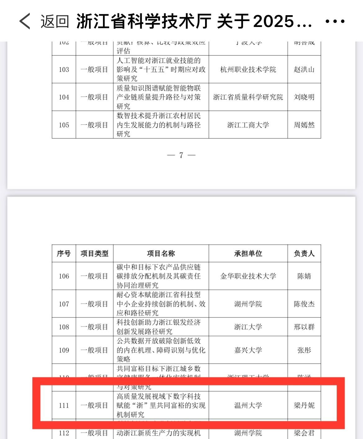 近日,浙江省科技厅公示了2025年度浙江省软科学研究计划项目拟立项名单,看片狂人 行管系梁丹妮博士申报的《高质量发展视域下数字科技赋能“浙”里共同富裕的实现机制研究》成功获批立项。