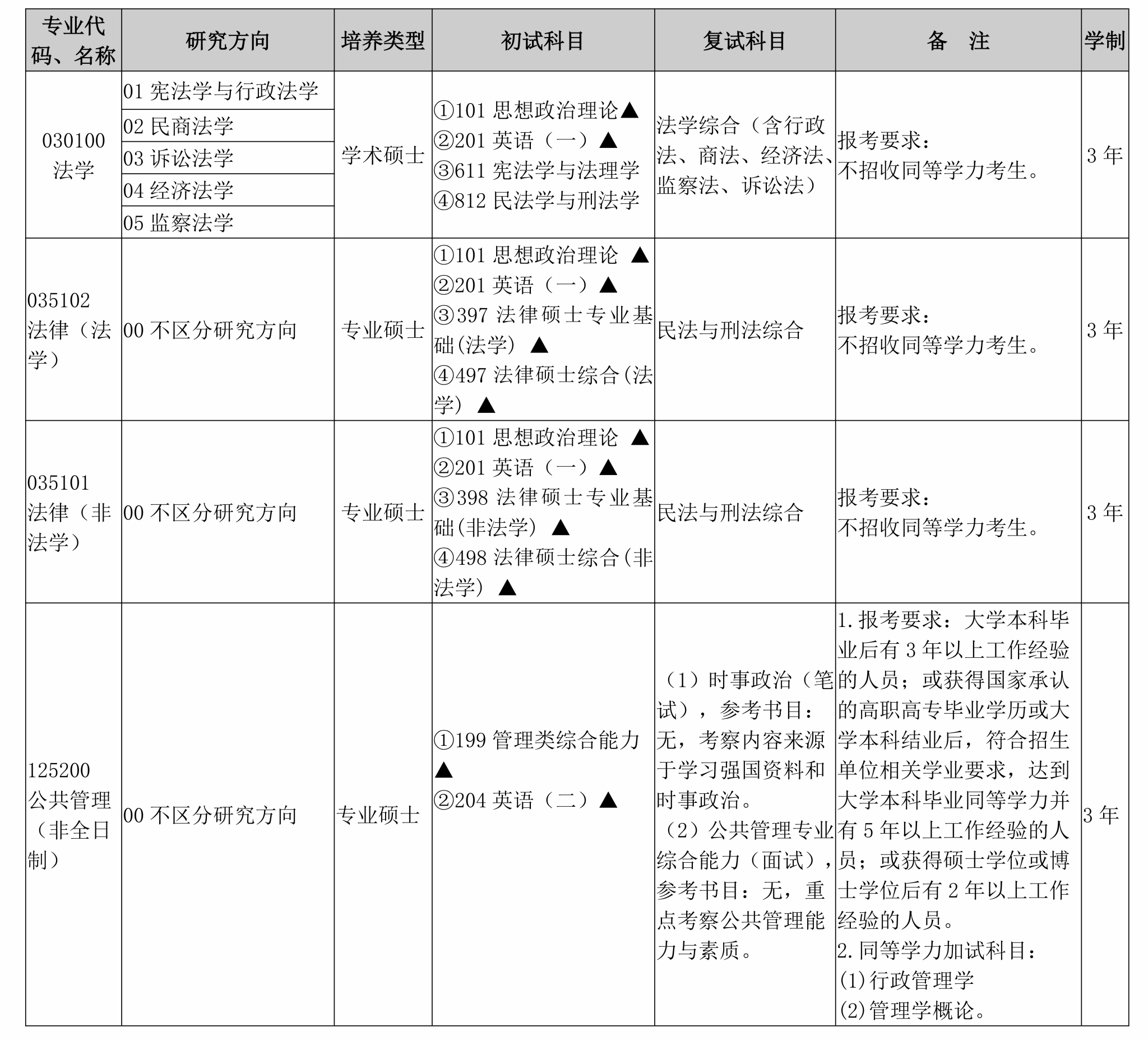 五、招生专业目录