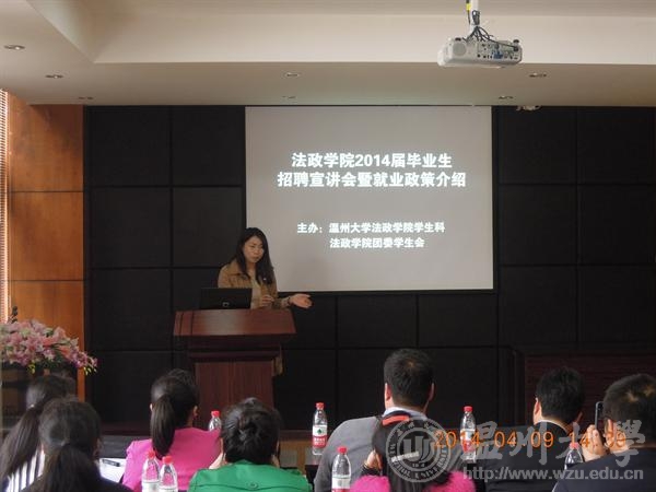 招聘会正式开始前,严书记在学院307会议室与全部招聘单位负责人座谈介绍了法政毕业生的专业素质等基本情况,学生科孙德升老师在学院一楼报告厅向在校毕业生、院学生会主席团、就业服务部等团学各部门学生干部介绍了2014年毕业生就业形势和政策,详尽分析了法政各专业毕业生近五年的就业去向数据和典型案例,指导毕业生科学合理进行职业定位、规划职业路径,同时要求院学生会主席团、就业服务部等团学部门学生干部要在服务毕业生就业方面"发挥作用、分头对接、搜集信息、做好服务、体验就业、自我锻炼",积极协助毕业生搜集发布各专业的就业岗位信息,在服务学院学业就业中心工作和毕业生的同时,让自己提前了解本专业的就业岗位需求,提早勾画并逐步实现自己的职业梦想。
