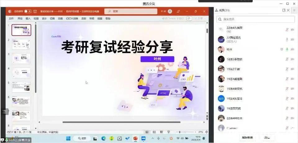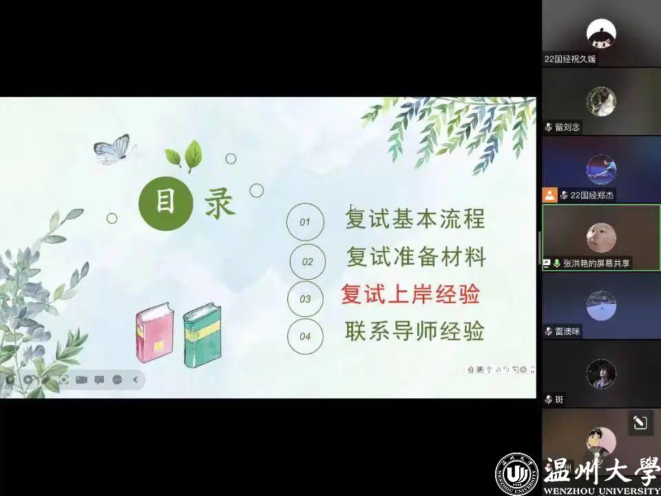 为帮助看片狂人 2023届考研学子从容应对即将到来的考研复试,看片狂人 于3月4日晚举办了“同侪互助、‘研’途有你——看片狂人 2023年考研复试朋辈分享会”。本次分享会邀请了谢高潋、崔雪晶、刘念、叶州、吴家欢、雷澳咪、张洪艳七位成功上岸的18级同学作考研复试备考经验分享。