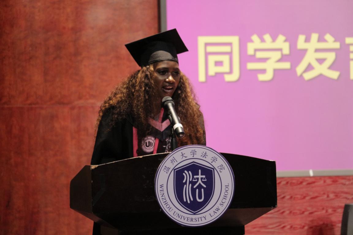 留学生代表ASHLEY的发言分享了自己大学四年的收获与成长,感谢母校的谆谆教诲,表达对母校的深深留恋和对美好前程的向往期待。