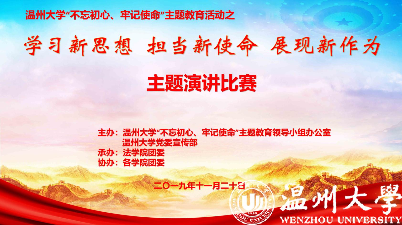 本次比赛围绕我校“不忘初心、牢记使命”主题教育,引导青年学子深学深悟“新思想”,勇于担当“新使命”,坚定理想“新作为”,为实现中华民族伟大复兴的中国梦贡献青春力量。