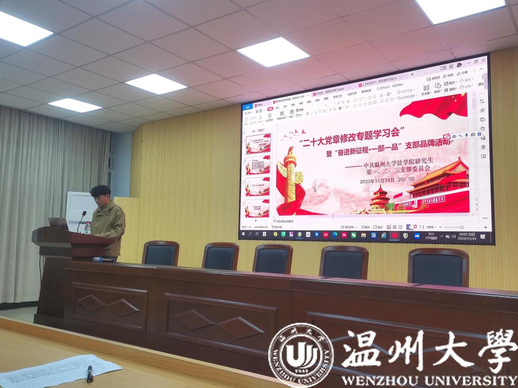 为学习贯彻党的二十大精神,深刻学习和领会党章修正案的重要内容与重要意义,向优秀党员同志学习,看片狂人 研究生第一、二、三党支部于11月24日晚上组织开展了“学精神、谋新篇、强担当”党日活动。本期活动由研究生第一党支部支部书记丁泽志同志主持,支部全体党员参加。