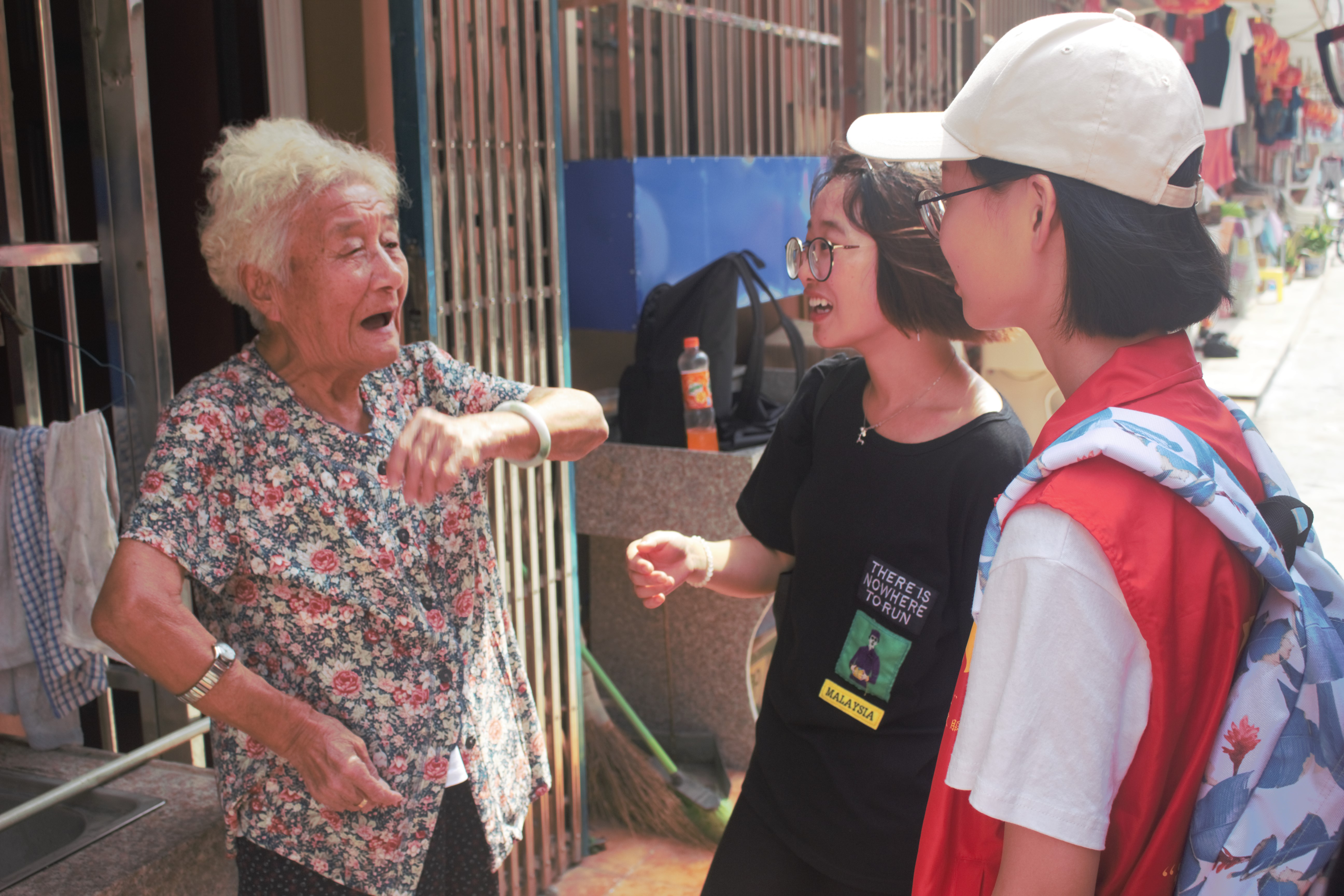 而雁归巢面对的不是活泼爱动的小孩子,而是在社区中孤独的老人们。从7月6日的出征仪式开始,前期在社区进行问卷调查,给老人进行防诈骗、健康知识等内容授课,同时组织了挨家挨户探望和采访老人等一系列问候活动。除了给老人送去关怀和温暖,队员们也开始意识到,老年人不一定不如年轻人,烈士暮年,壮心不已,即使是年华垂暮,人生也能大放异彩;而他们安居乐业,积极乐观,无私奉献的精神也值得每一个当代人敬佩和学习!