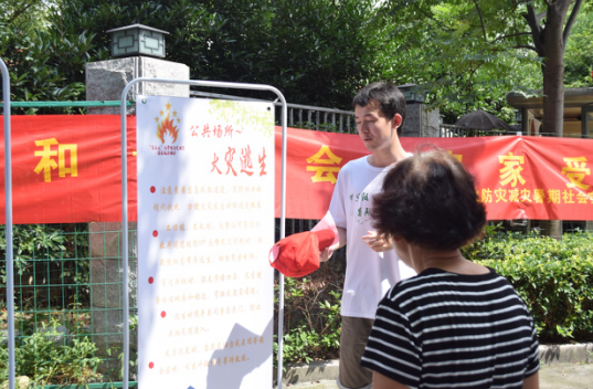 图 13队员们为社区老人传送火灾逃生知识