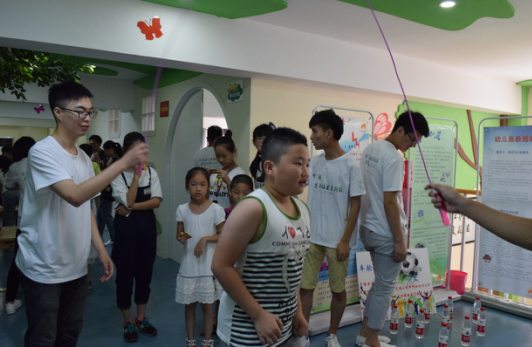 图 16队员们带领孩子们玩防灾减灾闯关游戏