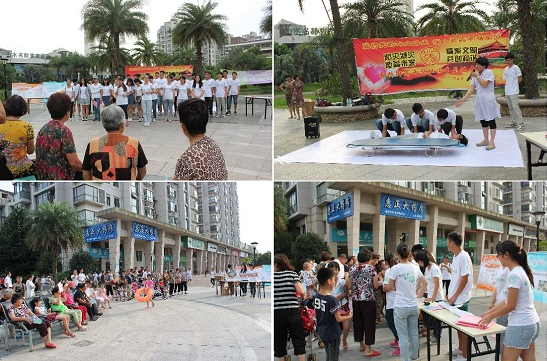 为增强公众的安全意识,大力宣传防灾减灾知识,2015年7月14日下午,在温州市民政局的指导下,瓯海区民政局联合看片狂人 "梦夕阳"防灾减灾志愿者分队,在社区山水名都小区举办了一场以 "防灾减灾"为主题的知识宣传活动,同时在"微舞台"举行了一场防灾减灾的知识宣传汇演,现场吸引了几百名观众前来观看。