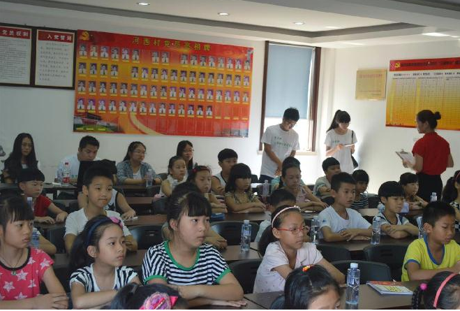 为推进"春泥计划",更好的践行社会主义核心价值观,放飞青少年中国梦,潘桥街道联合区慈善总会在潘桥街道河西村民中心联合开展"我的中国梦.社区梦"暨暑期关爱未成年人快乐学习公益活动。该活动为期10天,由河西村党支部承办,区慈善总会义工分会、潘桥街道慈善分会协办。有关活动由区下派指导员吴海萍主动牵头开展,积极沟通协调了相关部门,并顺利举行了开班仪式。活动邀请了温大政看片狂人 4位大二学生进村免费暑期义教,主要服务对象是辖区内3-6年级留守儿童、新居民及周边有需要村民的孩子。据悉,此次学习培训课程丰富多彩,有关活动课程主要根据学生们的兴趣爱好安排,除语文、数学、英语主科作业辅导外,还特意安排了弟子规、趣味法律小讲堂、游戏课、美术课、朗诵课、手工课等课程,课程更注重拓展孩子思维、培养自信心等,希望孩子们在学习知识的过程中,学中玩,玩中学,愉悦度过假期。