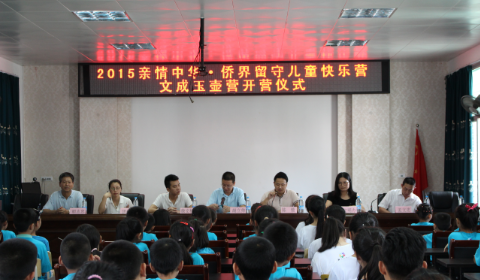 7月14日上午,"亲情中华"温州市侨界留守儿童第六季快乐营玉壶分营于玉壶镇中心小学会议室举行开营仪式。出席开营仪式的有侨联主席、外侨办主任胡立帅,文成县教育局党委委员工会主席陈锁,玉壶镇副镇长徐文桂,团县委、文明办领导代表,玉壶镇侨联主席胡志忠等多位领导以及全体营员和志愿者。