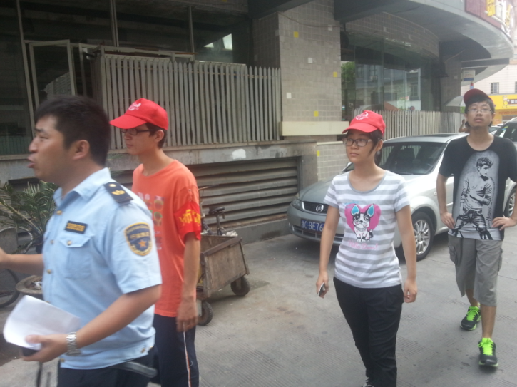仍旧是上午9点,时间队员们再一次跟随城管队员出去执法,执法进行了将近一个小时之后,实践队员们开始采访。第一个被实践队员采访的是,一个社区的主任。社区的主任对于城管的印象很不错,赞扬了城管工作成果,同时对于城管工作条件的艰苦表示了理解,最后,社区主任也对城管提出了一些建议,第一次采访圆满的结束了。接下来,实践队接连采访了两位店主,店主对于城管基本表示满意,只是认为有的时候,城管执法时态度不够好,希望在这一方面有所改进。下午,在一个社区门口,一群老人正在聊天,实践队员们也上前询问。谁知道老人们对于城管的印象很不好,纷纷指责城管的不是。后来详细询问才知道这些感觉主要是以前的城管造成的,如今的城管虽然还不能让他们满意,但总的来说还是比以前好了很多。