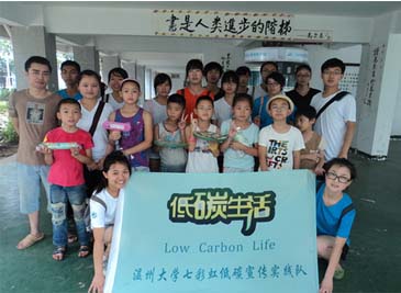 本次讲座由实践队队员担任,虽然条件有限,但是讲座还是在队员们的通力配合下有序地进行着。主讲队员先是向在场同学们解释了低碳和低碳生活的含义,并形象生动地联系具体生活例子。讲座期间,主讲队员还多次与同学们互动,以有奖问答的形式引得同学们争先恐后的举手发言。其内容包括同学们对低碳生活的理解,自己生活中的低碳小窍门,以及对低碳环保的展望。整个讲座在当地居委会的协助下,队员们的努力下以及同学们的配合下顺利结束。另外,实践队还给在场的每个同学分发了一个环保购物袋,希望同学们能在日常生活中行出低碳生活的理念。拿到购物袋的同学们十分开心,纷纷表示以后出门购物一定会带上购物袋并避免使用塑料袋。最后,同学们与实践队一起合影留念,给实践队的活动画上了圆满的句号。