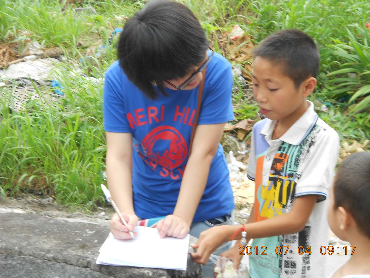 望着他们热情的目光,我们知道我们要做的事很多,不仅要找出污染源,也要探索近年来癌症的发病率逐渐上升是否与当地的环境污染有关。同时,我们也要进我们所能环保宣传,使人人都能做到:把环保当成一种习惯。