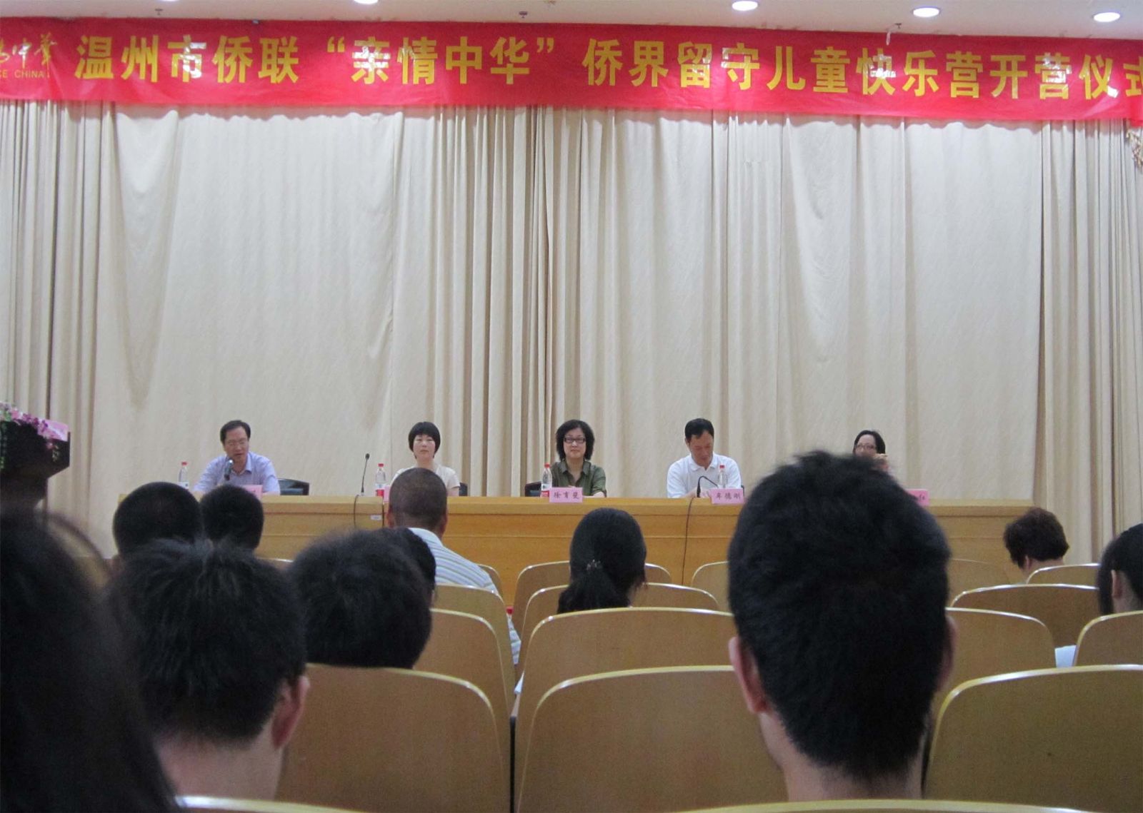 7月2日早上九点,"亲情中华"温州市侨界留守儿童快乐营开营仪式在看片狂人 南校区的雁山厅里隆重举行。为了让这个暑假不再单调与乏味,一群有激情的大学生志愿者组建了一支名为"亲情中华"温州市侨界留守儿童快乐营的社会实践队伍,以此向留守儿童们奉献自己的一份关怀。