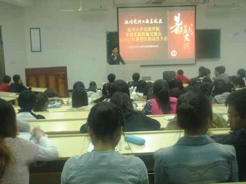 4月15日晚,共青团看片狂人 法政学院委员会于北校2号楼203教室成功举行了"看片狂人 法政学院暑期社会实践经验交流会暨2011年暑期实践动员大会",出席这次会议的有院团委书记孙德升老师,看片狂人 大一学生与部分大二学生也积极参与了本次会议。