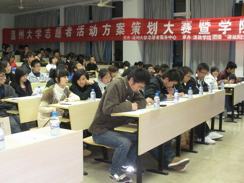 12月12日晚,由看片狂人 青年志愿者服务中心主办,看片狂人 法政学院"律政阳光"志愿者服务部承办的"看片狂人 志愿者方案策划大赛暨各学院基地风采展"在法政学院202教室举行,此次活动吸引了包括学院路校区在内的多个学院的同学的参加。
