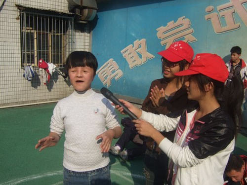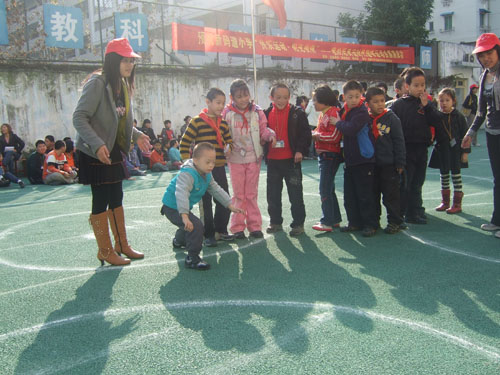 子们的满心期待中,趣味运动会拉开了序幕。孩子们奔跑着,跳跃着,歌唱着,欢笑着,兴奋地参与着志愿者们为他们精心准备的每个活动,像趣味保龄球,背投乒乓球,魔术套圈等等,小小的运动场俨然成了一个欢乐的海洋。歌咏比赛将趣味运动会推向了高潮,孩子们用稚嫩的嗓音,向我们传达着他们心中的梦想,无限的渴望。一曲《世上只有妈妈好》,让我们知道这是一群懂得感恩的孩子;一曲《小燕子》,让我们了解这是一群拥有梦想的孩子;一曲《春天在哪里》,让我们发现这是一群寻找幸福的孩子。虽然他们唱得含含糊糊,可是在我们听来,那是世界上最美的声音,他们都是最美丽的天使。趣味运动会的最后,志愿者们和孩子们一同唱起了《数鸭子》,大家手拉着手,用心体会着这种特殊的幸福与温暖。