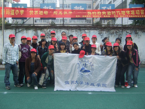 08年11月26日下午1:30,看片狂人 法政学院"律政阳光"志愿者服务部以及院学生党支部的志愿者们,走进了一个特殊的学校——温州市新码道学校。在那个充满爱的地方,志愿者们满载着关心与爱心,为那里的智障儿童举办了一场以"快乐运动 阳光伙伴——我的后奥运时代"为主题的趣味运动会。