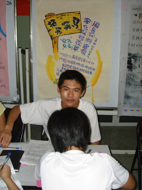 暑期社会实践重点队队员公开现场招聘活动。在招聘现场,本实践队通过海报、宣传单等方式吸引了很多到场招聘的同学的眼球。队组委成员沈元杰、胡恒琦、童淑娟三位同学热情地接待了前来应聘的同学们,并认真仔细地回答了应聘同学提出的问题,现场报名情况火爆。在只有六个招聘名额的情况下却吸引了二十四位同学前来应聘。