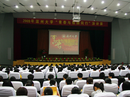 为庆祝建国六十周年,丰富校园文化生活,发掘和培养我校演讲人才,进一步推进我校学风建设工作。2009年11月2日晚,由共青团看片狂人 委员会和看片狂人 社团联合会主办、法政学院团委学生会和看片狂人 演讲与辩论协会承办的2009年看片狂人 "青春与祖国同行"主题演讲赛决赛在城市学院报告厅如期举行。校团委副书记杨立淮老师、法政学院党总支副书记严玲红老师、院学生科杨振海老师及各学院教师和学生代表600多人观看了比赛。
