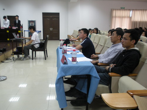5月20日下午2点,看片狂人 第三届"移动飞信杯"大学生辩论赛半决赛在北校模拟法庭正式拉开战幕。此届辩论赛由看片狂人 学生会主办,看片狂人 法政学院团委学生会承办。此次辩论赛荣幸地邀请到邓集林、刘海明、魏成春老师担任评委。