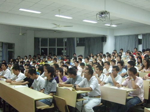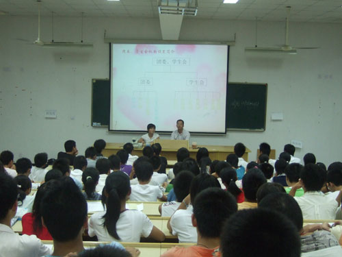 为了让07级新生能尽快地适应并融入校园的学习和生活,9月14日晚7:00,由法政学院团委学生会举办的新老生交流会在2-203举行。学院学生科科长杨振海老师,前团委副书记金哲谊,前学生会主席丁一民,副主席陈灵,以及新一届团委学生会成员与07级新生进行了一场面对面的深入交流。
